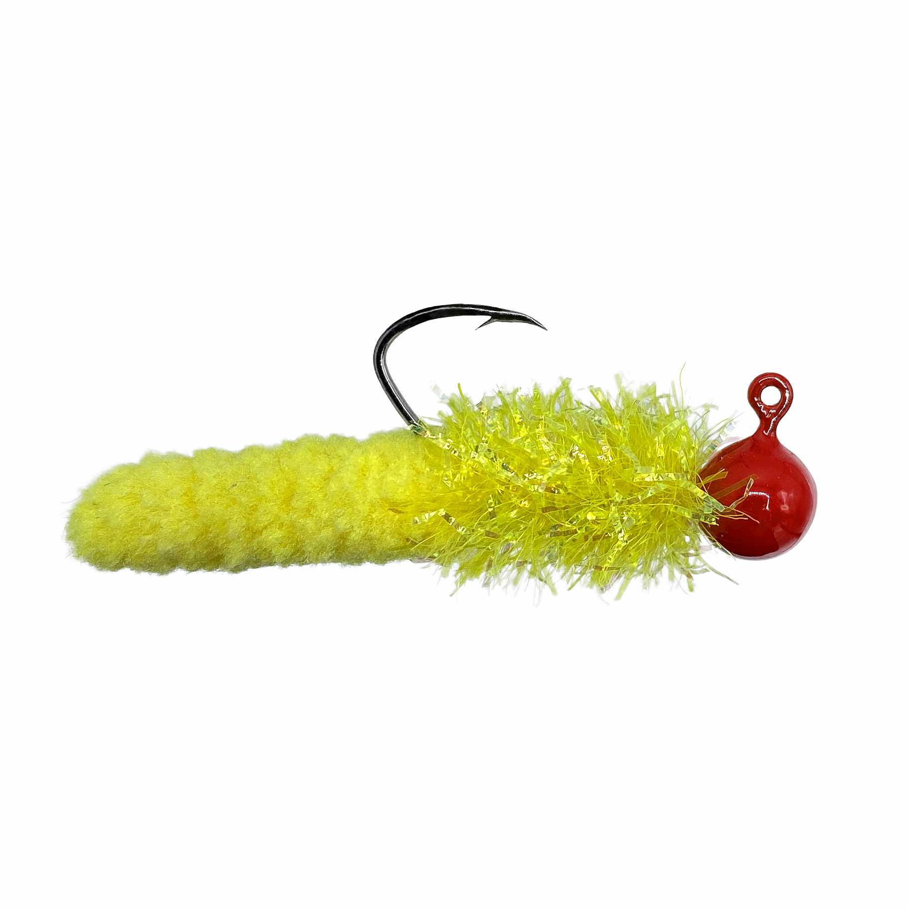- Mop Jig™ with Yellow Sparkle Chenille, Yellow Body, and Red Jig Head.