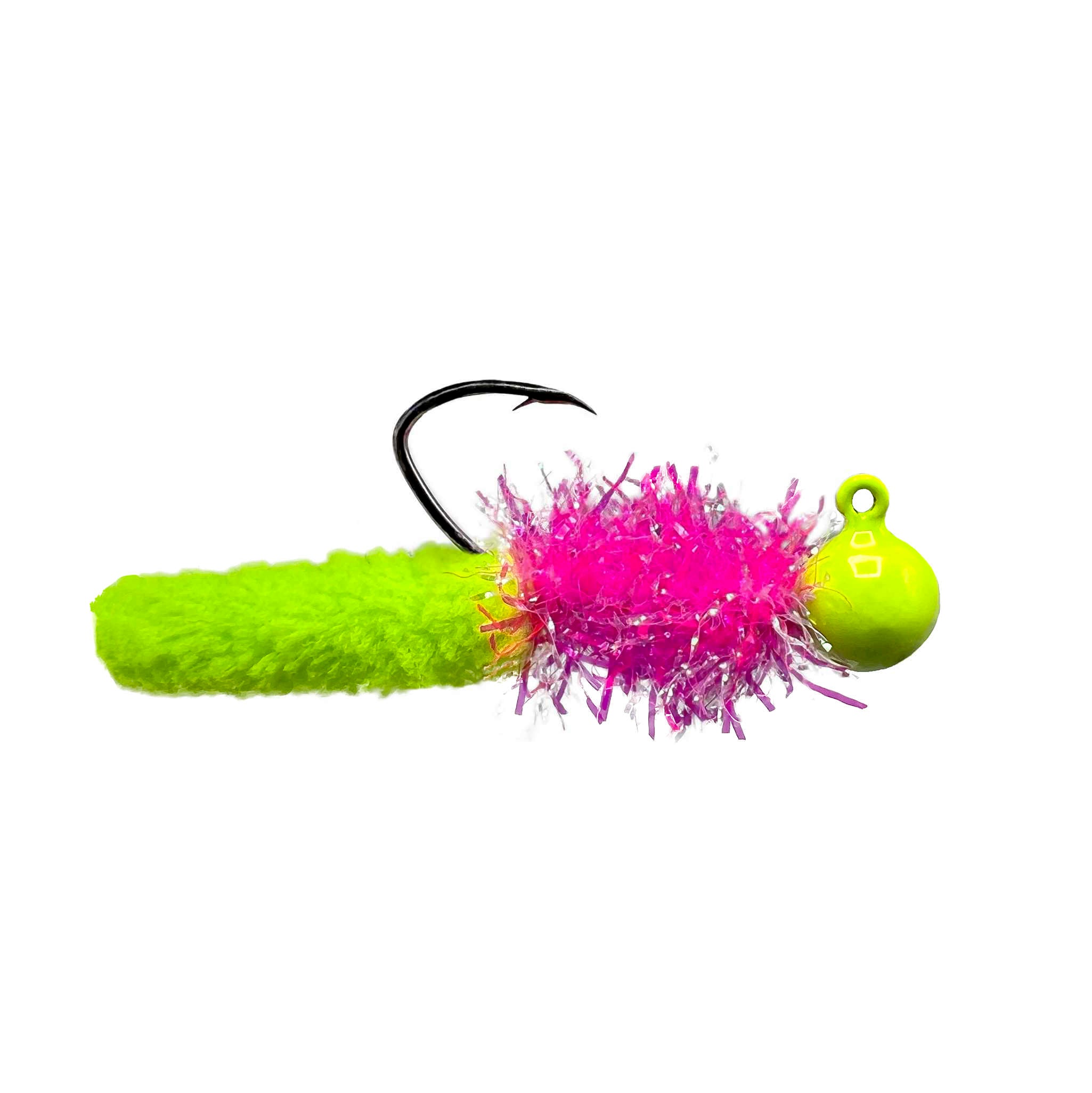 • Mop Jig™ with Hot Pink Sparkle Chenille, Chartreuse Body, and Chartreuse Jig Head.